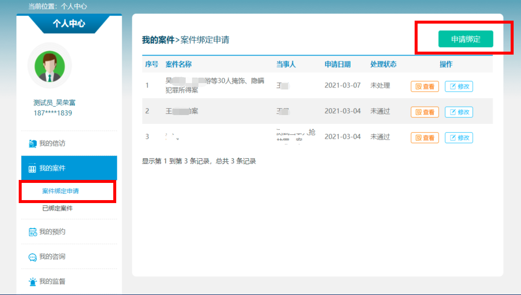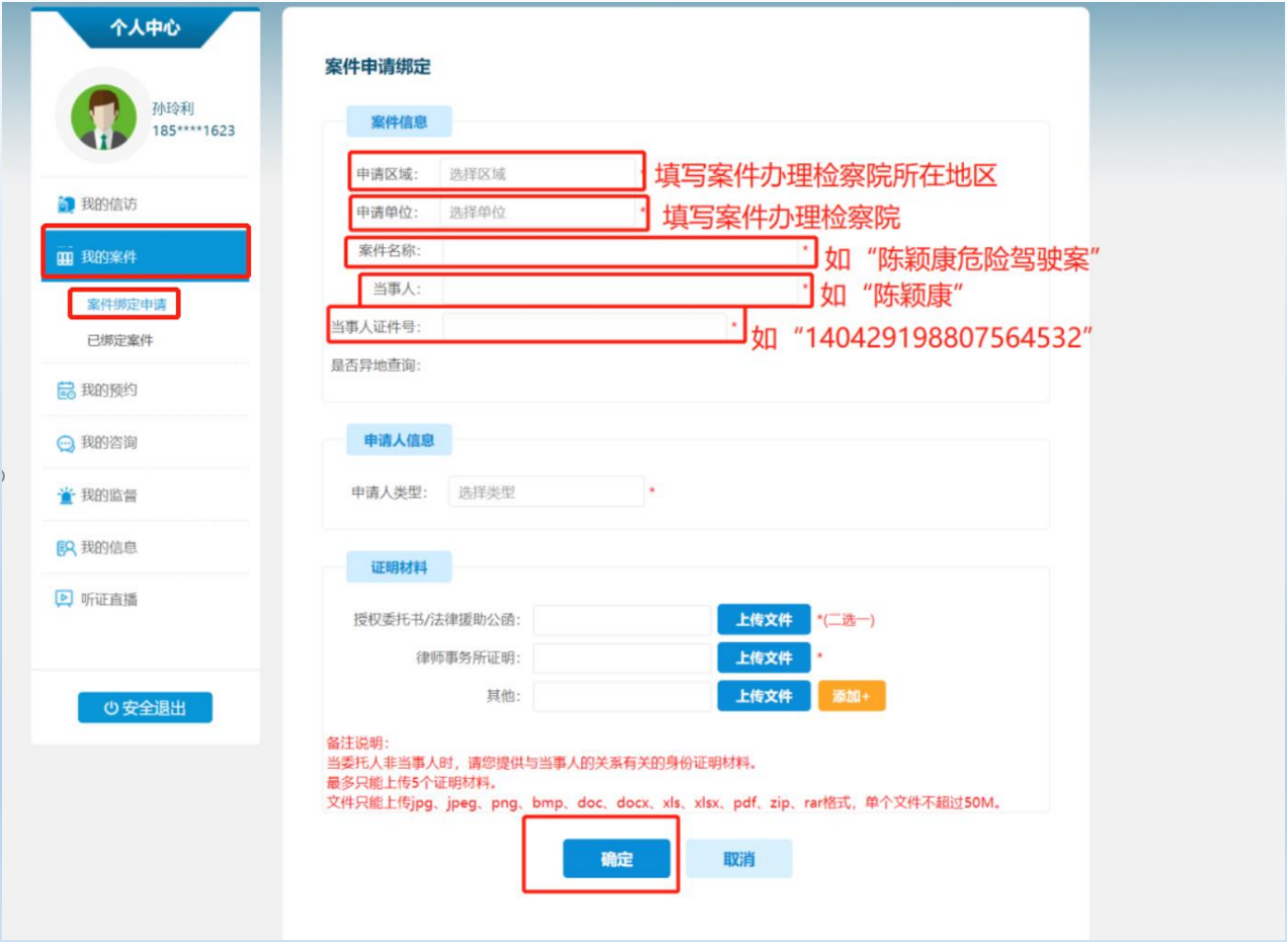 “案件绑定信息填写”录入相关代理案件的基本信息
