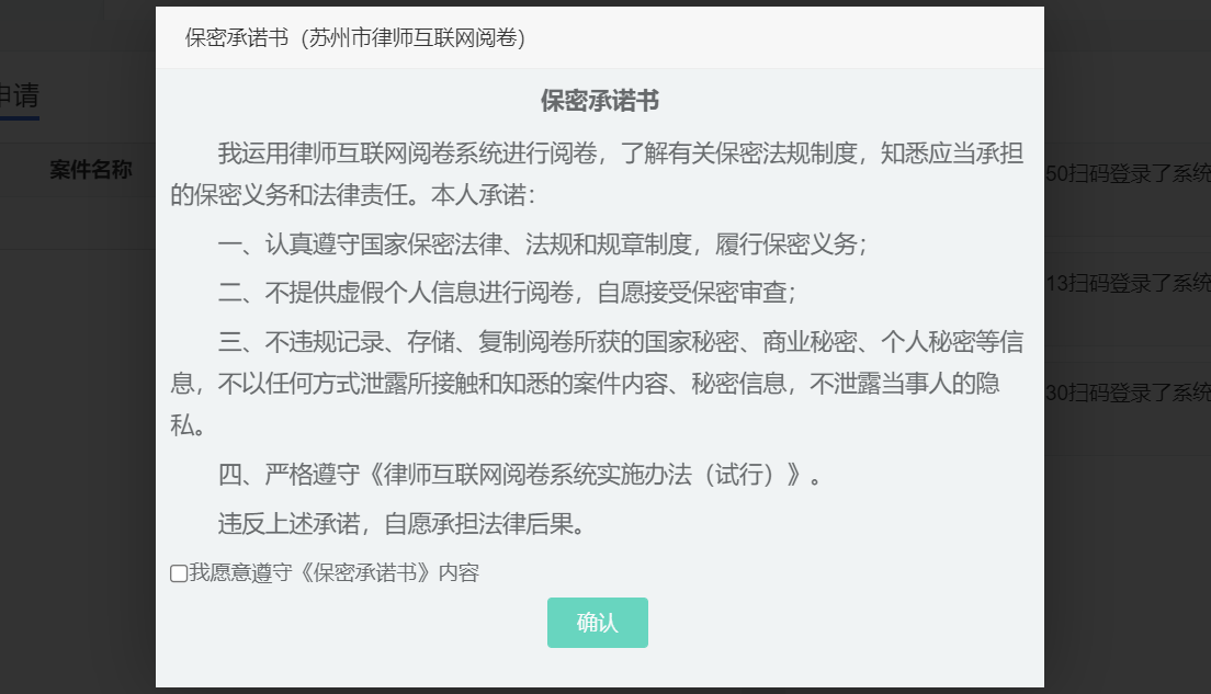 需确认律师互联网阅卷实施办法(试行)和保密承诺书