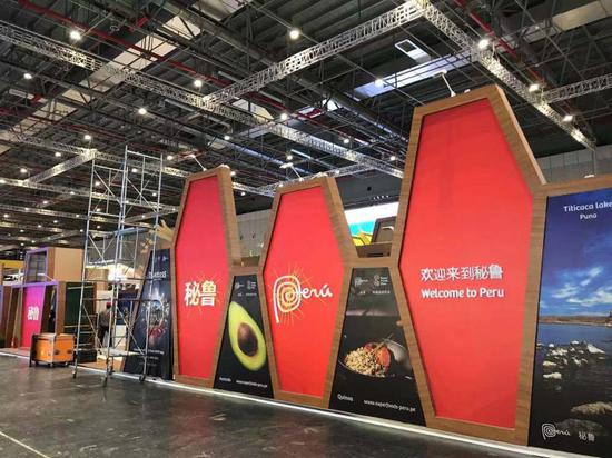 秘鲁国家馆,总体设计充分吸收了秘鲁传统建筑和纺织技艺的精华,其纵横交错的丝线绘制出色彩斑斓的上古神兽与几何图案。秘鲁是全世界羊驼最多的国家,高端纺织品是其特色。去年进博会上,秘鲁国家馆将巨大“羊驼”摆入展馆,成为网红打卡地。今年这一“吸睛”做法将得到延续。