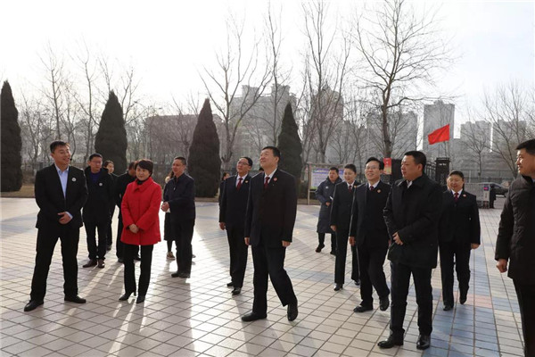 孝义中学校长赵永旺为杨景海检察长颁发聘书