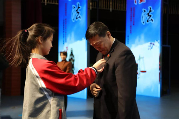 “当同学们为我戴上校徽,称呼我‘杨校长’时,我的内心无比激动,同时也感到一种沉甸甸的责任。要帮同学们培养并牢固地树立起正确的法治观念,扣好人生第一粒扣子,这是我身为一名法治副校长的使命。”杨景海检察长深情地说。
