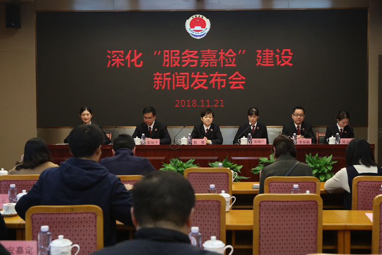 11月21日上午,嘉定区检察院召开深化“服务嘉检”建设新闻发布会,该院党组成员、副检察长郭箐在发布会上介绍了嘉定区检察院服务经济社会发展大局的工作机制和举措,四名检察官通报了“服务嘉检”建设典型案事例。
