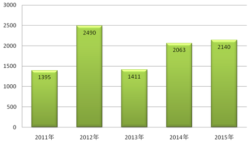 图1:2011—2015年全市受理金融犯罪审查起诉案件数