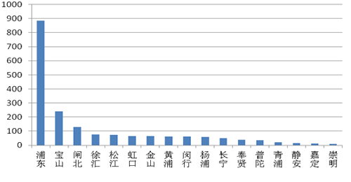 2015年,案件区域分布仍相对集中,各区县间差异悬殊。各区县院中,案发量最多的浦东新区近900件,宝山区次之,随后是闸北区,均超过100件,而崇明县院、嘉定区院等均不足20件。
