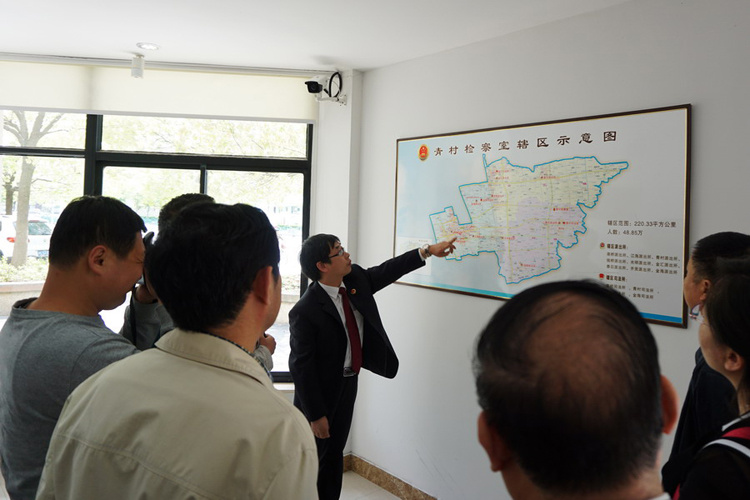 王庆华副检察长一行参观了青村检察室的接待大厅、谈话室、调解室、法制宣传基地等场所。随后社区检察部门负责人王益春围绕社区检察近几年来的工作重点和取得成效做了详细介绍。王庆华副检察长表示回院后将结合自身的特点,推广好的经验,使社区检察工作取得更好的成效。