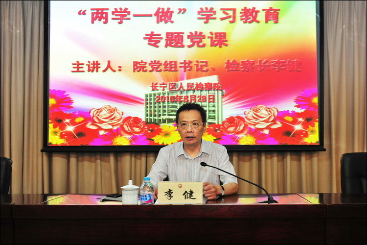 近日,长宁区检察院党组书记、检察长李健为全院党员作了题为“以‘两学一做’要求为指引,争做检察机关模范党员干部”的党课报告。