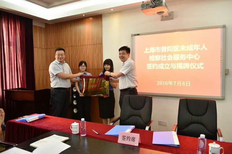 7月8日上午,首期专题班结业仪式在澄源中学举行,会上,普陀区检察院与区教育局会签《关于开展“法治进校园”巡讲活动的方案》、与区综治委预防青少年违法犯罪专项组会签《“建立普陀区未成年人检察社会服务中心”合作协议》,并为普陀区未成年人检察社会服务中心揭牌。