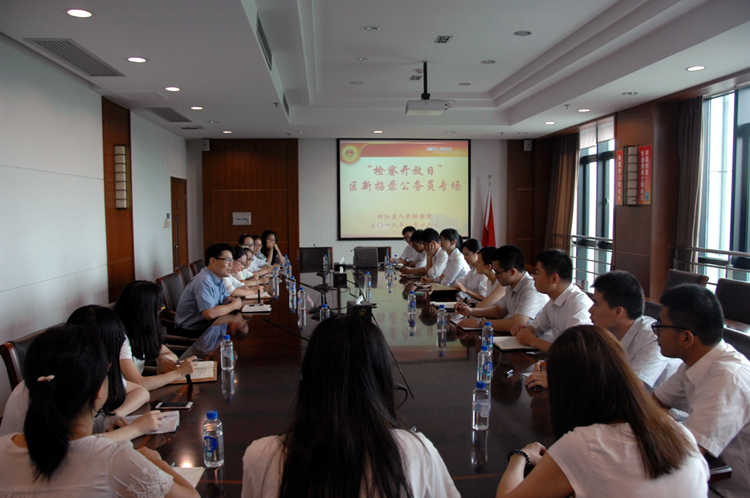 近日,松江区检察院组织开展“检察开放日”活动,来自区发改委、社保中心、医保监督所、党史研究室、车墩镇等单位的21名新招录公务员来到该院进行参观交流,他们先后参观了检察文化长廊、司法办案区和信访接待区,随后与检察官进行了座谈交流。检察官向大家介绍了检察院各职能部门及工作职责,对于大家提出的问题作了耐心解答。