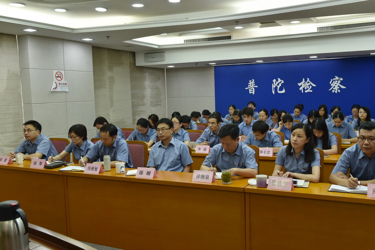 近日,彩票计划软件 公诉一处顾晓敏处长应邀到普陀区检察院授课,普陀区检察院副检察长吴波、陈颐,全体公诉干警及部分青年法学小组成员参加。顾晓敏处长从法庭调查中的讯问与询问、法庭调查中的举证与质证、法庭辩论等三方面就如何做好出庭公诉工作进行专题辅导。