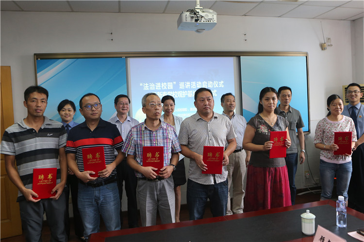 未检处处长吴燕、市教委青保处处长朱坚为新春学校未成年人社会观护基地揭牌,并与区教育局局长姚伟、区政法委副书记夏彬、区检察院副检察长郭箐一同为新春学校的6名教师颁发观护人员暨合适保证人聘书。