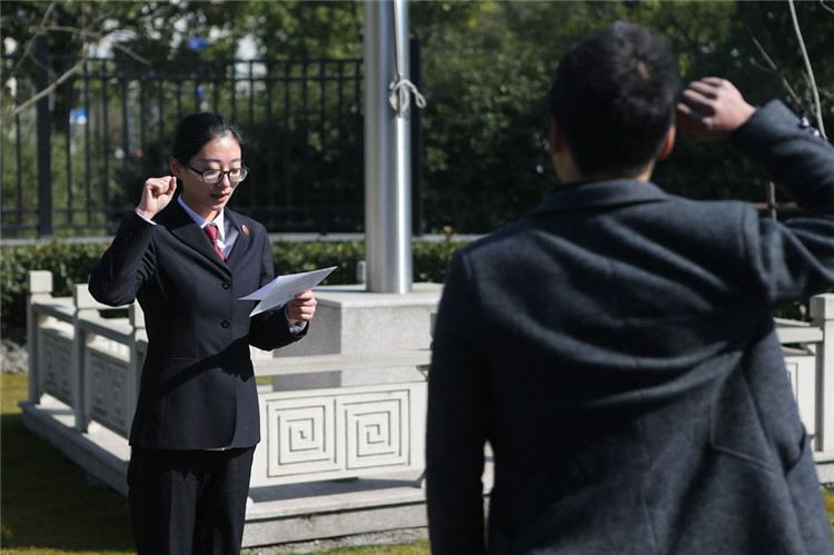 不起诉宣告结束之后,检察官将小伟带到国旗下。在领誓人的带领下,小伟高举右手,仰望国旗,宣读誓言。阳光下国旗飘扬,誓词也掷地有声。“我是中华人民共和国公民,在十八岁成年之际,面对中华人民共和国国旗,庄严宣誓:遵守宪法和法律,正确行使公民权利,积极履行公民义务,自觉遵守社会公德……我立志要做最好的自己!”