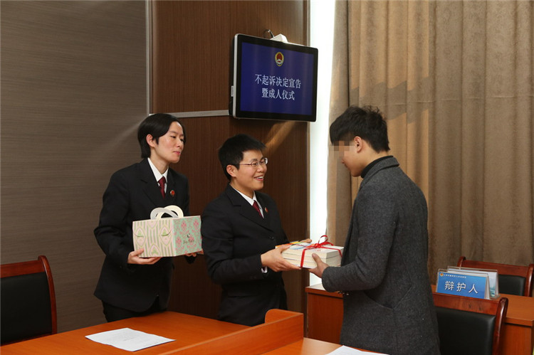 在案件审查办理过程当中,检察官发现,2月13日这天正是小伟的十八岁生日,检察官决定在这个特殊的日子里对小伟决定不起诉并宣告,同时为他举行一场特别的成人仪式,鼓励他开始新生活,翻开人生新篇章。