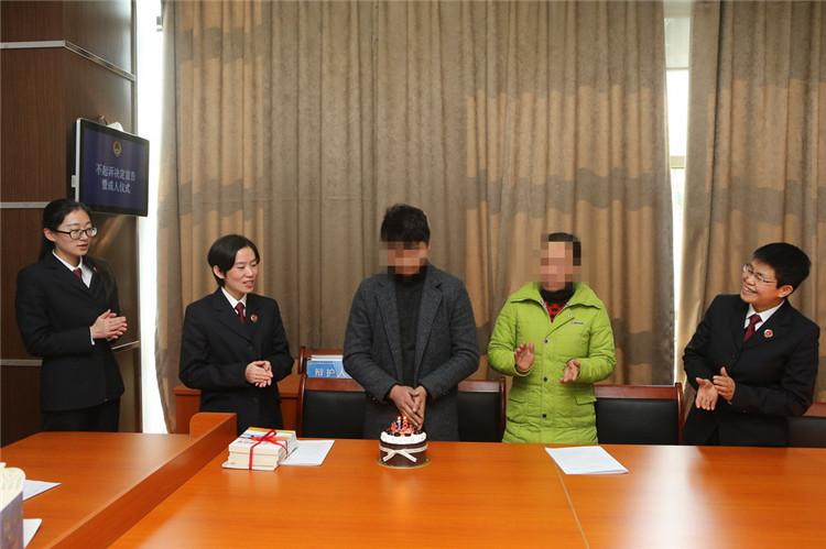 宣誓结束后,伴着生日歌,检察官拿出早已准备好的蛋糕,为小伟庆生,还送上书籍作为生日礼物。看着眼前为自己庆生的检察官,小伟开心又感动,“谢谢你们陪我过生日,新一年我争取有新的发展、新的开始”,小伟说道,而他的舅妈却悄悄背过身子擦起了眼泪,她告诉检察官自己感触万分,感谢检察院给孩子一个改过自新的机会,并表示今后会好好照顾督促他。