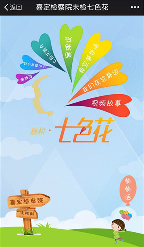 为了让未成年人在遇到法律、生活上的问题,可以第一时间寻求到检察机关的帮助,嘉定区检察院未检科开设了嘉检“七色花”微官网,由未检干警维护,专门为未成年人释法说理、解疑答惑。3月1日,嘉检“七色花”微官网正式上线。