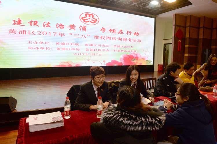 黄浦区检察院组织女干警在区社区服务中心开展了以“建设法治黄浦,巾帼在行动”为主题的法治宣传教育活动,向群众宣传检察机关在保护妇女儿童权益方面的工作情况,发放了普法宣传资料,并提供法律咨询服务。