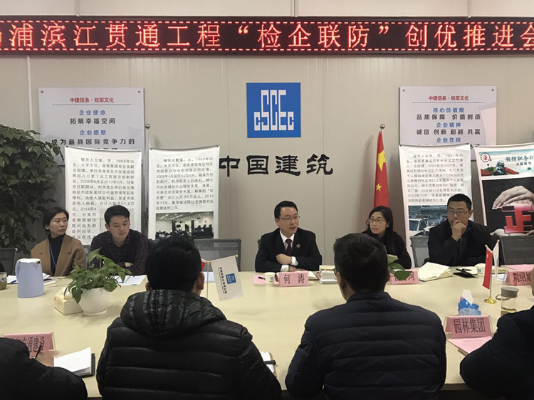 为进一步推进滨江贯通工程创双优活动,努力构筑工程建设中的廉政防线,日前,杨浦区检察院深入工地一线参加工程例会,现场开展预防工作。