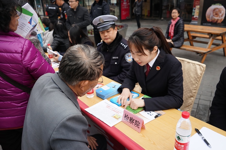 3月17日上午,青浦区检察院联合区政法委、区法院、公安等单位在桥梓湾广场开展综治和平安建设集中宣传日活动。