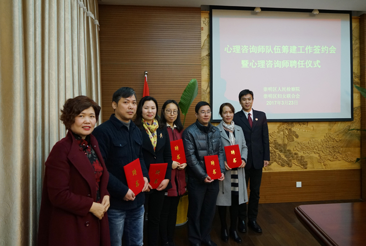 日前,崇明区检察院联合区妇联召开心理咨询师队伍筹建工作签约会暨心理咨询师聘任仪式,区妇联主席陈汇辉、崇明区检察院副检察长包强出席,双方部门负责人及受聘心理咨询师参加。会上,崇明区检察院与区妇联分别介绍了未成年人保护方面的工作职能和举措,签订了《关于筹建心理咨询师队伍的合作协议》,并为心理咨询师颁发了聘书,心理咨询师代表作了交流发言。