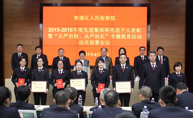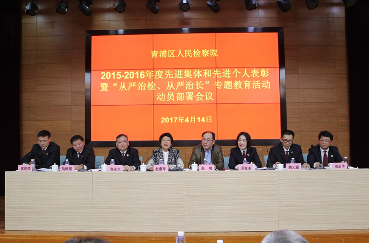 日期,青浦区检察院召开先进集体和先进个人表彰暨“从严治检、从严治长”专题教育部署大会。青浦区委书记赵惠琴、区委常委、政法委书记赵明出席会议,会议还邀请了部分廉政监督员出席,全体检察干警参加了会议。