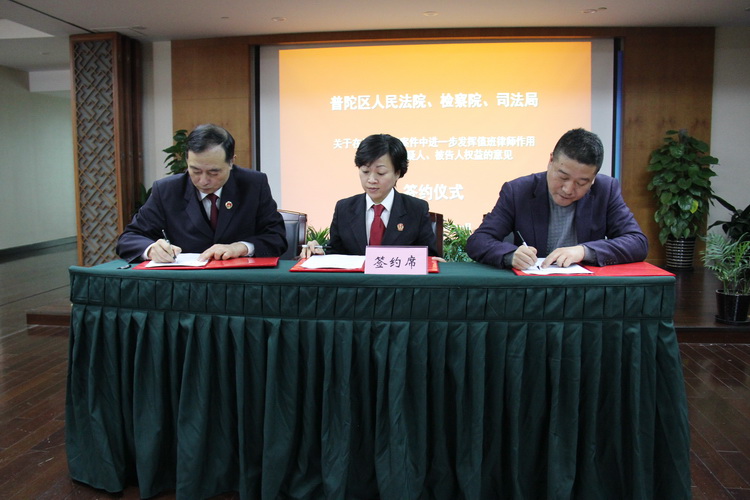 近日,在前期充分协商的基础上,普陀区检察院与区法院、司法局正式会签《关于在认罪认罚案件中进一步发挥值班律师作用保障犯罪嫌疑人、被告人权益的意见》,明确了法律援助中心介入认罪认罚案件的流程等内容,为在认罪认罚案件中进一步发挥律师作用提供了明确、规范的指引。通过会签文件,普陀区检察院进一步深化认罪认罚从宽制度试点工作,有利于统筹公平与效率,切实保障犯罪嫌疑人、被告人的合法权益。