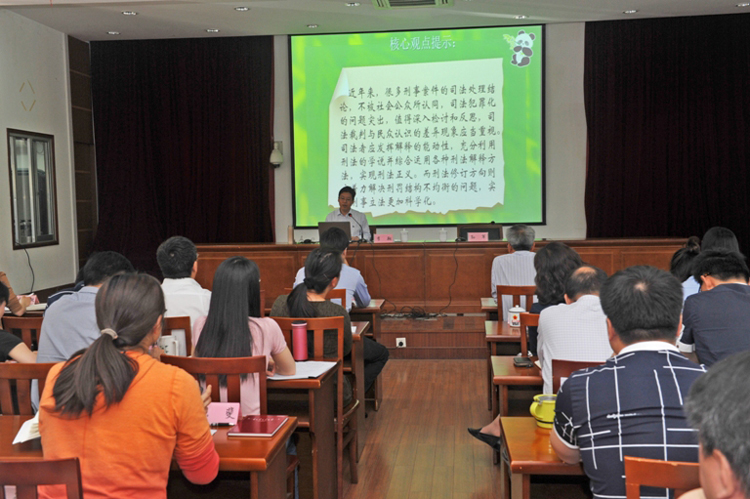 会议由该院党组书记、检察长孙军主持,检委会委员及全体干警参加。李翔教授从立法和司法上的犯罪化问题切入,对司法犯罪化问题进行反思,并对刑法的修订进行展望。孙军检察长强调,大量的社会现象、社会关系和社会矛盾以案件的形式进入检察环节,检察干警要用正确的世界观和方法论去看待,还要学会运用比较法研究的思维方式指导司法实践。