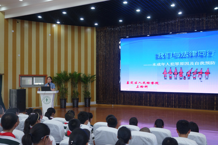 新一年暑期来临之际,为帮助青少年度过一个健康有益的假期,6月2日,嘉定区检察院未检科干警走进校园,以预防未成年人违法犯罪和保护未成年人合法权益为主题,为马陆育才联合中学200余名初中预备班学生开展法治讲座,正式开启2017年学法用法夏令营活动。检察官从典型案例出发,向学生讲解未成年人犯罪的诱因及法律规定,并通过动漫短片等形式提升学生的自我防范能力,引起同学们的积极互动和热烈回应。