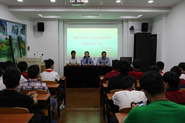 近日,虹口区检察院干警赴虹口区广中学校开展了以“防治校园暴力”为主题的专题法治巡讲活动。本次活动是该院联合区未保办开展的“2017年虹口区‘法治进校园’巡讲系列活动”之一。