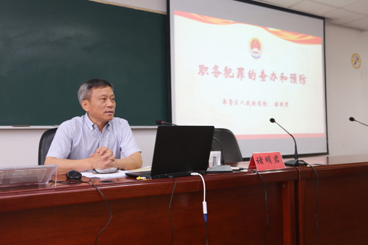 会上,褚明君副检察长介绍了检察机关的反腐败斗争史,讲解了国家工作人员职务犯罪的概念、分类、主要罪名以及涉及职务犯罪的主要法律规定,结合具体案例分析了当前检察机关查处的职务犯罪案件主要特点和原因,并提出预防建议:一要掌握法律常识,履职用权不任性。二要谨慎结交朋友,管好家人不“坑爹”。三要祛除侥幸心理,不可迷信凭运气。四要善于计算得失,别拿西瓜换芝麻。五要培养健康情趣,别让爱好成枷锁。六要注意防微杜渐,莫让红包变炸弹。