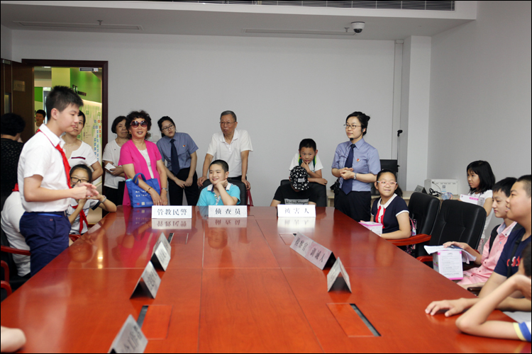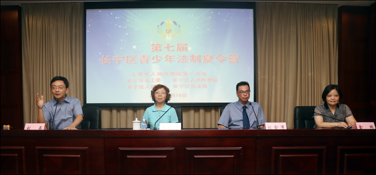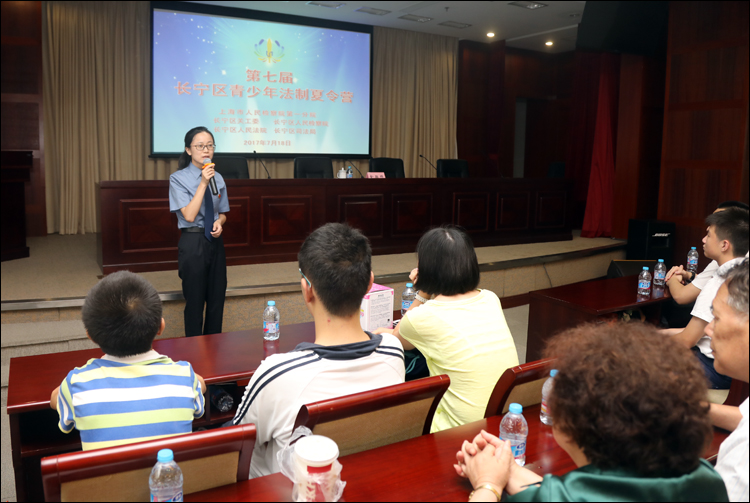 7月18日,长宁区检察院联合市检察一分院未检处、区关工委、区法院、和区司法局举办“2017年长宁区第七届青少年法制夏令营”活动,来自全区十个街镇的80余名社区青少年、华政附中学生和关工委老同志参加。