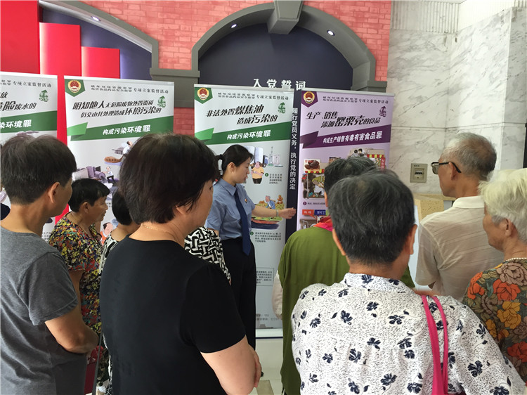 在此次活动中,安亭检察室还开展了关于破坏环境资源和危害食品药品安全犯罪专项立案监督活动的法治宣传。检察室干警向居民代表介绍了检察机关开展专项立案监督活动的工作成果,普及了有关破环生态环境和食药品安全方面的法律知识,提醒群众维护好自身生存安全和身体健康的权利。