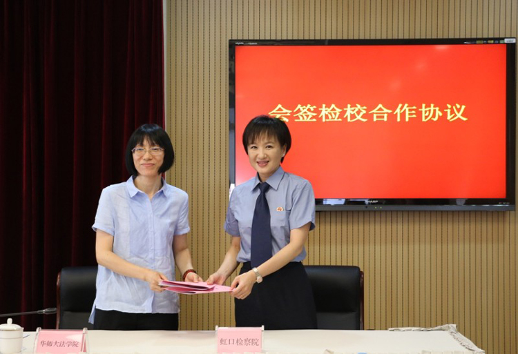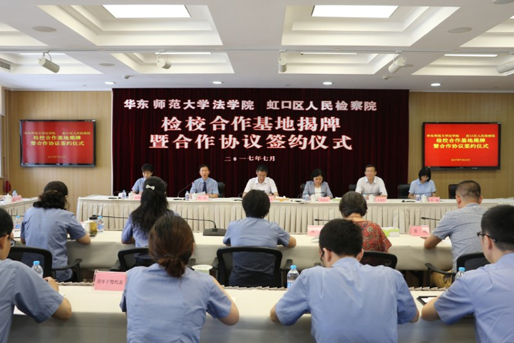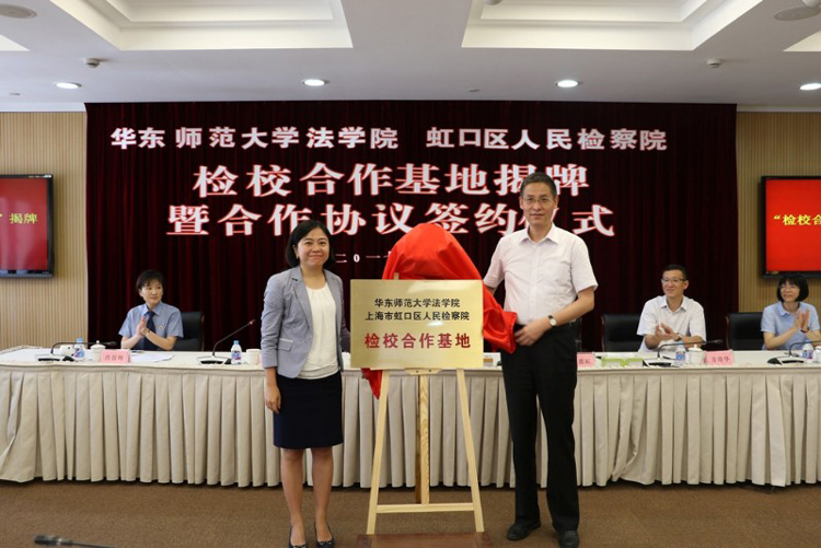 近日,虹口区检察院与华东师范大学法学院举行检校合作基地揭牌暨合作协议签约仪式。虹口区检察院党组书记、检察长金建庆,华东师范大学法学院党委书记张惠虹等领导出席。双方代表会签了《华师大法学院上海市虹口区人民检察院检校合作协议》,张惠虹书记和金建庆检察长共同为“检校合作基地”揭牌。