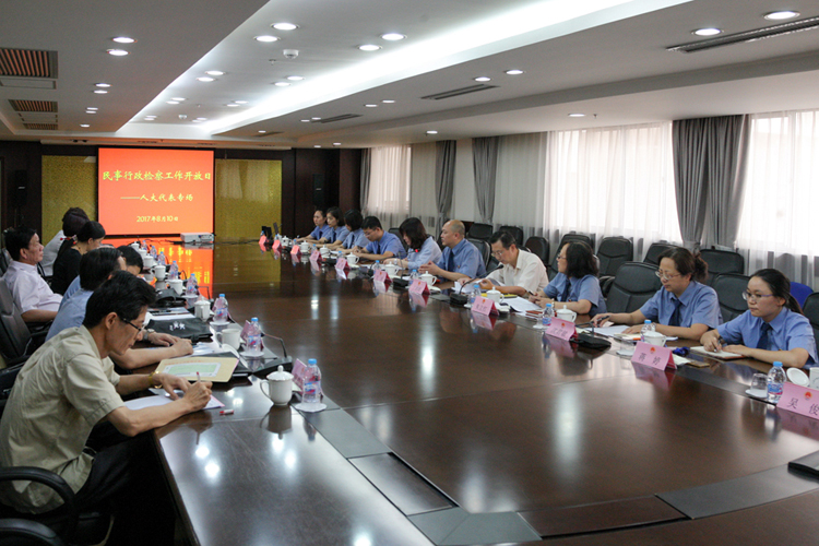 8月10日下午,杨浦区检察院举办以“检察机关提起公益诉讼”为主题的检察开放日活动,部分市、区人大代表受邀参加。活动中,人大代表听取了近期民事行政检察工作的情况,特别是检察机关提起公益诉讼工作相关情况介绍,并与检察干警开展座谈交流,为进一步开展公益诉讼工作提出建议。最后,代表参观了该院综合业务管理平台和司法办案区等场所,更加直观、全面地了解、感受了检察工作。