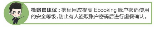 Ebooking是携程网提供给合作酒店使用的酒店管理系统,通过携程网预订酒店的客户,在携程网开展返利、积分兑换等活动期间,经酒店使用自己的Ebooking账户密码登录系统进行入住确认,携程网就会先行向客户进行返现、赠送积分,直到月末结账的时候,携程网才会与酒店核对这些订单的真实性。因此,一旦酒店自己的Ebooking账户密码被不法分子利用,就会造成携程网的损失。