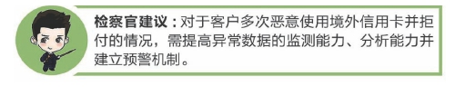 检察官建议,对于客户多次恶意使用境外信用卡并拒付的情况,平台需提高异常数据的监测能力、分析能力并建立预警机制。对于交易中出现的异常数据,比如同一个账号多次异常交易的,同一个卡号多次无法扣款的,应当及时抓取并预警,第一时间发现问题并采取账户封停等措施,降低网站的损失。同时,要及时报警,积极配合提供相关数据、固定证据,协助司法机关打击违法犯罪。