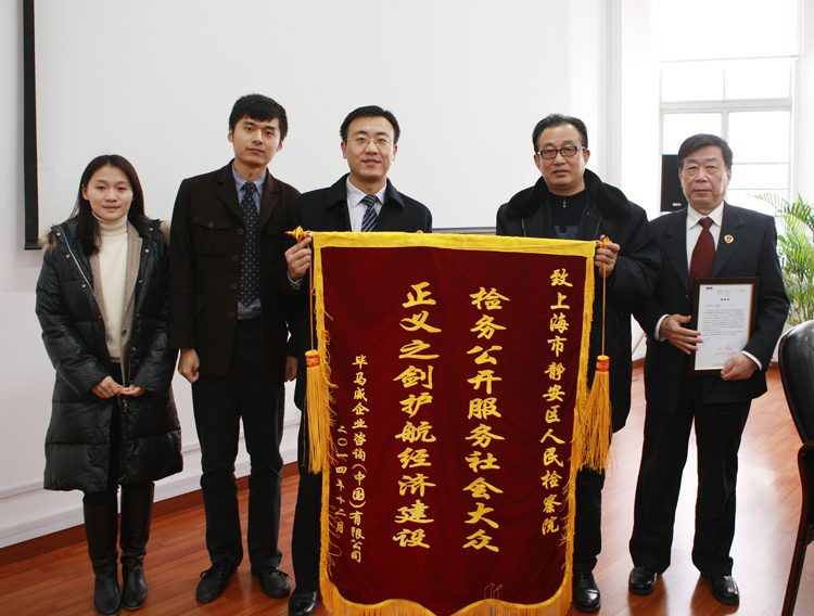 日前,国际知名会计师事务所毕马威企业咨询(中国)有限公司代表来到静安区检察院,赠送了写有“检务公开服务社会大众、正义之剑护航经济建设”的锦旗,高度肯定和感谢该院的行贿犯罪档案查询工作。
