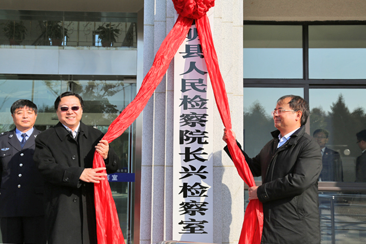 副检察长周永年、崇明县政法委书记梅云平共同为长兴检察室揭牌,并在崇明县院检察长倪峰等领导的陪同下,参观了崇明县院院史陈列室、宣传教育展示厅等区域。
