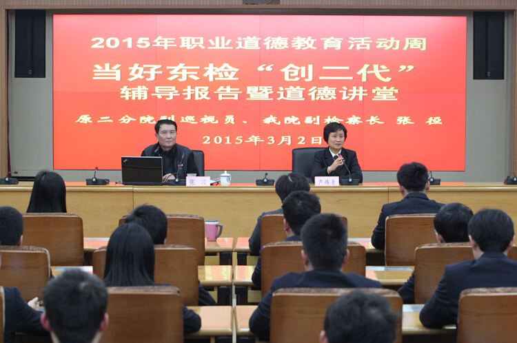 第二分院原副巡视员张径为70名青年干警上了一堂道德课,以“天职 使命”为主题,将中国和上海的检察历史娓娓道来,并将浦东“创二代”的历史使命和责任向年轻一代东检人传承。
