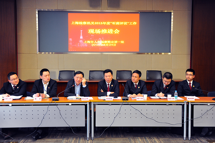 在评议现场举行了2015年度听庭评议工作推进会,动员部署新一轮全市检察机关听庭评议工作。17名人大代表、政协委员、特约检察员以及全市部分检察院公诉部门负责人参加动员。