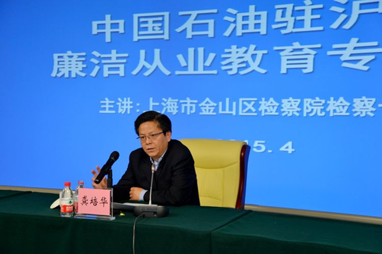 日前,金山区检察院检察长龚培华应邀为中国石油上海销售公司、中国石油西气东输管道(销售)公司、中国石油华东化工销售公司等驻沪企业作廉洁从业教育专题讲座,共3000余名中层以上干部参加讲座。