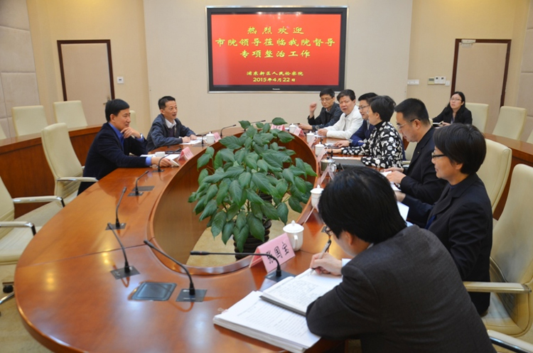 近日,彩票计划软件 副检察长陈辐宽一行到浦东新区检察院督导检查规范司法行为专项整治工作情况。浦东新区院检察长陈思群及专项整治工作领导小组办公室成员等参加会议。