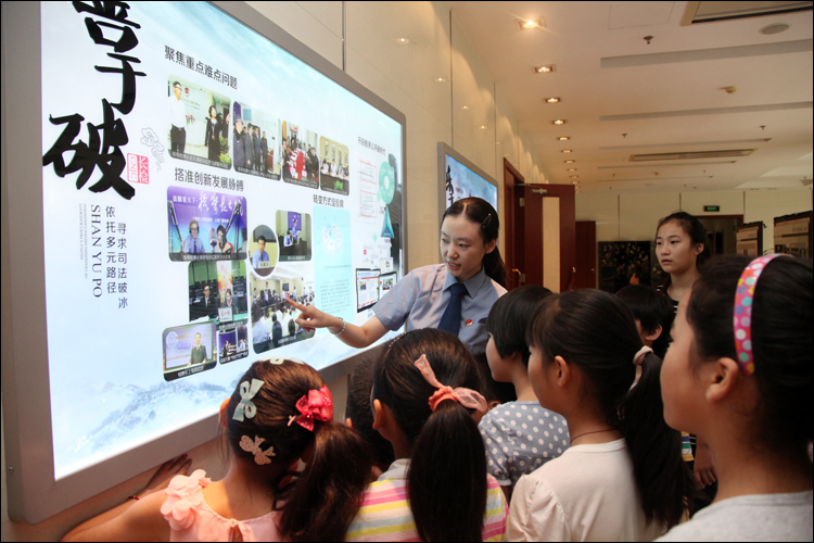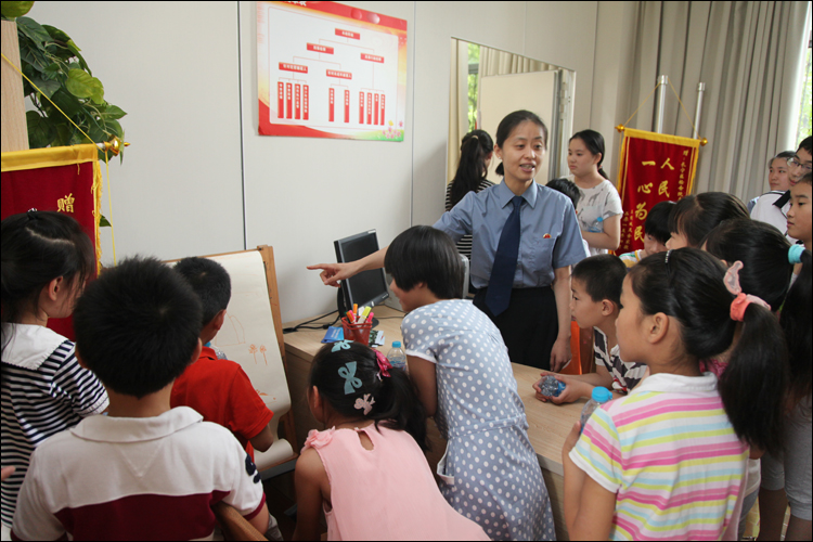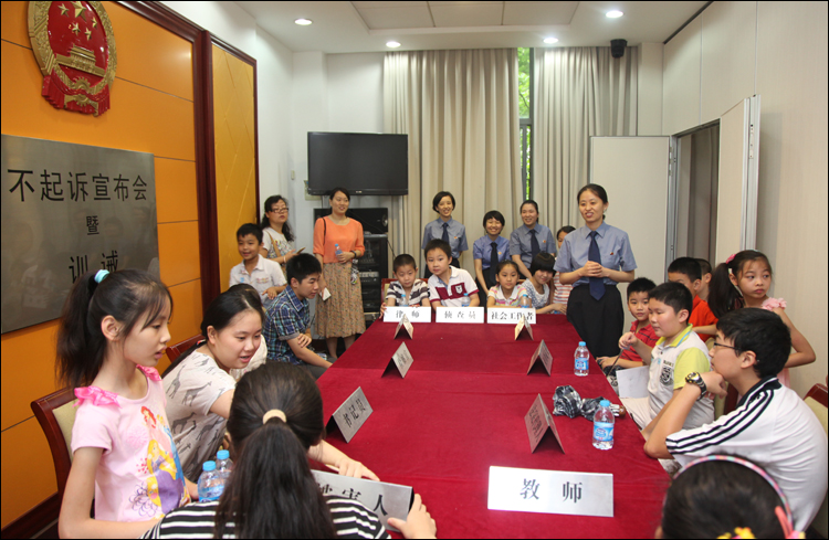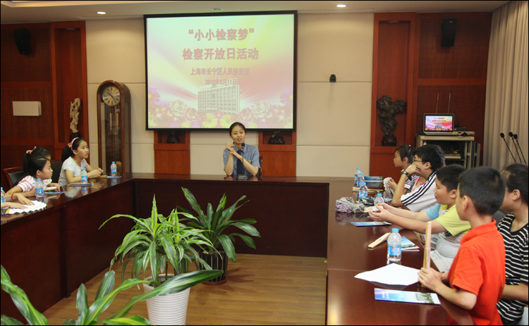 8月11日上午,长宁区检察院举行“小小检察梦”检察开放日活动,天山街道纺大居民区“绿苗中队”的20余名中小学生参加。