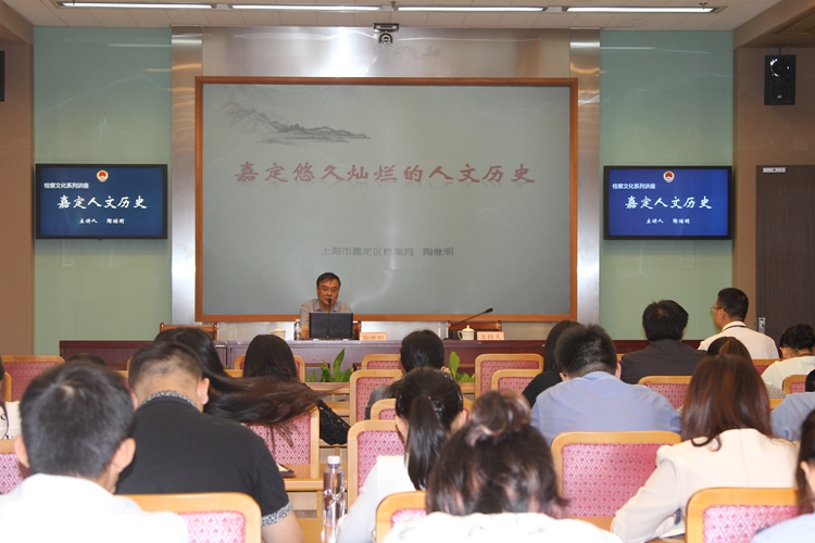 讲座分为“历史悠久”、“经济繁荣”、“文化昌明”、“人才辈出”四个部分,从嘉定的建城历史到划归上海以后迅速发展的经济,再到“教化嘉定”的璀璨文化,陶老师运用幽默的语言、丰富的内容,生动形象、深入浅出地为嘉定区院的青年干警讲述了嘉定丰富悠久的人文历史。
