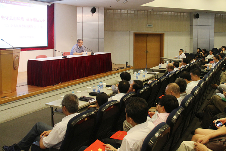 近日,宝山区检察院副检察长王强应邀赴上海大学作题为《坚守思想底线,确保廉洁从业》的廉政教育专题报告。校领导及涉及招生、财务、科研等领域的54个部门的工作人员及教师代表参加了报告会。