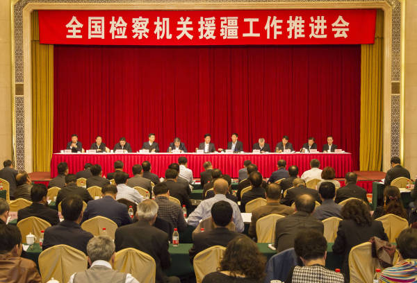 10月22日,全国检察机关援疆工作推进会在乌鲁木齐召开。中共中央政治局委员、新疆维吾尔自治区党委书记、新疆生产建设兵团党委第一书记、第一政委张春贤,最高人民检察院党组书记、检察长曹建明出席会议并讲话。曹建明强调,全国各级检察机关要深刻领会习近平总书记关于新疆工作的一系列重要指示精神和第二次中央新疆工作座谈会、第五次全国对口支援新疆工作会议精神,围绕“四个全面”战略布局,牢牢把握对口援疆工作的着眼点和着力点,统筹谋划、全方位推进检察对口援疆工作,推动新疆检察工作实现新的跨越发展,更好地服务保障新疆社会稳定和长治久安。