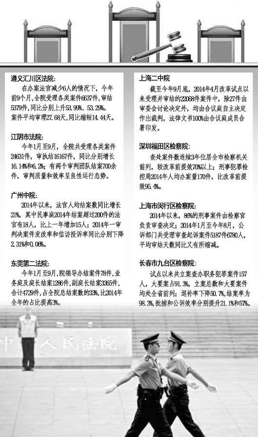 “改革后,进入员额的法官检察官减少了,但一线实际办案人员增多了;通过案件繁简分流,司法人力资源配置进一步优化,办案质量和效率提高了”“实践证明,改革试点缓解了案多人少矛盾”……在中央司改办近日召开的部分司法体制改革试点单位座谈会上,8个司法体制改革试点法院、检察院负责人介绍了各自改革的新举措、新成效、新变化。