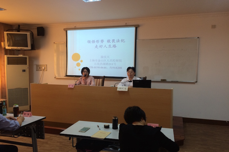 近日,金山区检察院副检察长徐庆天赴金山区委党校,为该区第十一期中青年干部培训班学员作职务犯罪预防专题报告。