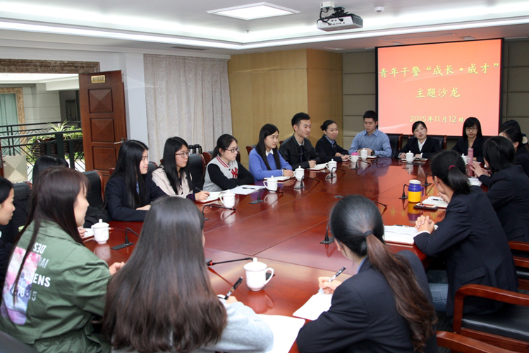 能手”石惠敏同志与青年干警进行交流。