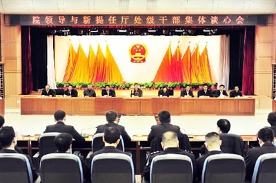 12月9日,最高人民检察院机关举行院领导与新提任厅处级干部集体谈心会,最高人民检察院党组书记、检察长曹建明出席并讲话。记者程丁摄