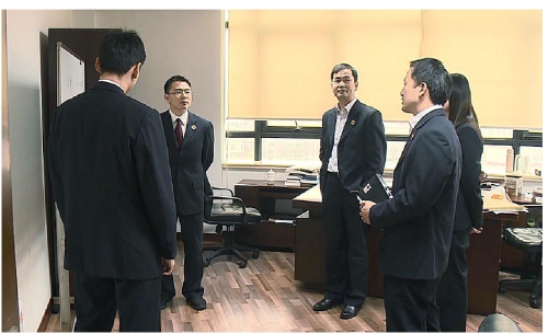 图为办案检察官讨论案情