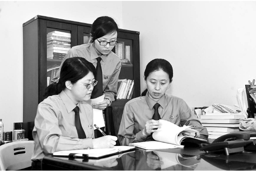 长宁区检察院未检科检察官讨论一起案件的进展情况。闫昭摄